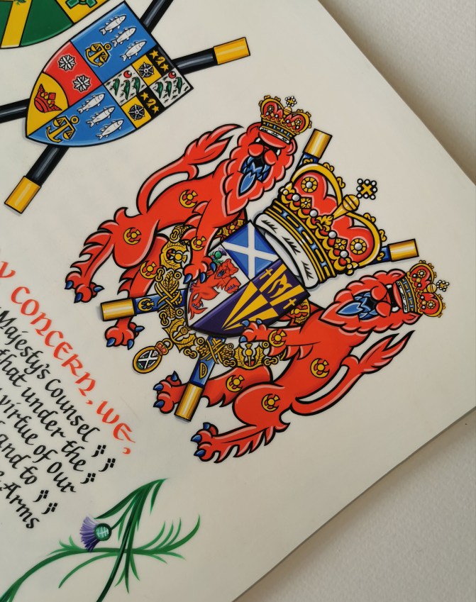 Since 2007 I’ve specialised in heraldic art and calligraphy. The combination of my experience as a professional artist and calligrapher along with a degree in design means I can work with you to achieve work of a high standard but also unique in concept.