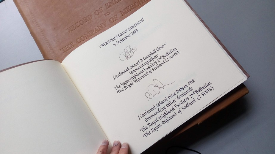 The Royal Company of The Merchants of Edinburgh Traditional VIP and Roll book. Ink on paper. Share this: Click to share on X (Opens in new window) X Click to share on Facebook (Opens in new window) Facebook Related